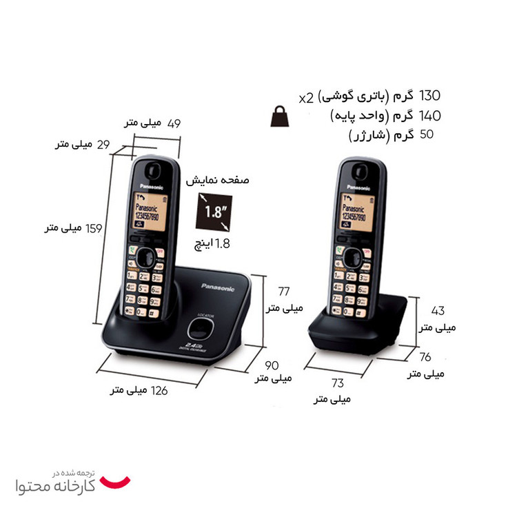 تلفن بی سیم پاناسونیک مدل KX-TG3711 اندازه متوسطی داشته و به راحتی در دست جای میگیرد. پایه قابلیت نصب روی دیوار دارد. اندازه پایه آن برابر 128x98x205 میلیمتر است. این اندازه یک اندازه استاندارد بوده و فضای بسیار کمی را اشغال میکند. طراحی بسیار سادهای دارد؛ اما این طراحی باعث نشده تا قابلیتهای آن زیر سؤال برود. در واقع طراحان پاناسونیک سعی کردند تا با بزرگ کردن شمارهها، آن را به یک مزیتی برای این مدل گوشی تبدیل کند. صفحه نمایشگر آن مانند بقیه مدلها دارای اندازه 1٫8 اینچ است. فقط یک تفاوت وجود دارد. تمام شمارهها روی این صفحه نمایش بزرگ و خوانا نشان داده میشود. به این صورت هیچ مشکلی در دیدن شمارهها برای افراد وجود نخواهد داشت. فرکانس این مدل گوشی مانند مدلهای پاناسونیک 2٫4 گیگاهرتز است. دفترچه تلفن آن قابلیت ذخیره 100 شماره را دارد. در واقع میتوان گفت که در قابلیتهای ساده و اولیه گوشی پاناسونیک مدل چیزی کمتر از بقیه ندارد. مدل گوشی اسپیکر بسیار سادهای دارد. فقط کافی است با فشار دادن دکمه مربوطه، به راحتی گوشی را روی میز قرار داده و در هنگام انجام فعالیتهای خود با تلفن هم صحبت کنید. برد تلفن در محیط بسته 50 متر و برد تلفن در فضای بیرون 300 متر است. در واقع دقیقاً چیزی شبیه به بقیه مدلهای حرفهای گوشی پاناسونیک است. این مدل گوشی از دو باتری نیم قلمی AAA بهره میبرد. در هنگام شارژ کامل شما میتوانید تا 10 ساعت با این گوشی صحبت کنید. استفاده و نصب ساده داشته و فقط کافی است خطوط تلفن و برق آن را وصل کنید. تلفن بی سیم پاناسونیک مدل KX-TG3711 علاوه بر ظاهر ساده سیستم چیدمان بسیار منظمی هم دارد. تمامی شمارهها به صورت منظم در ک