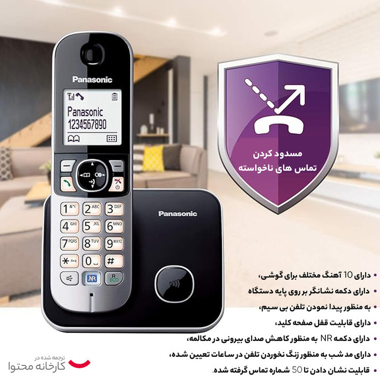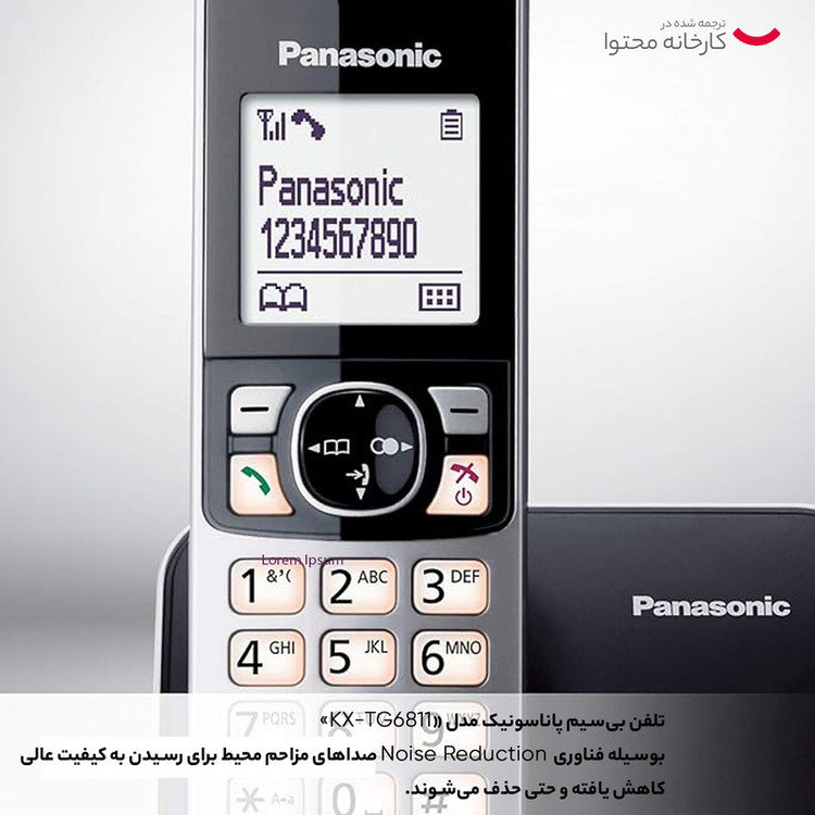 تلفن بیسیم پاناسونیک مدل «KX-TG6811» دارای زبان فارسی و فاقد منشی تلفنی است، اما کیفیت صدایی فوقالعاده تولید میکند و از چندین قابلیت تکنولوژی «DECT» سود میبرد. همچنین گوشی بیسیم شیک آن دارای صفحهنمایش تکرنگ «Monochrome» بزرگی است که کارکردن با دستگاه را بسیار آسان میکند. کیفیت صدا در این تلفن تحسینبرانگیز است؛ بوسیله فناوری Noise Reduction صداهای مزاحم محیط برای رسیدن به کیفیت عالی، کاهش یافته و حتی حذف میشوند. قابلیت ذخیرهسازی 100 مخاطب در دفترچه تلفن و 10 آهنگ مختلف برای گوشی و قابلیت نشان دادن تا 50 شماره تماس گرفته شده از دیگر ویژگیهای این تلفن بیسیم به شمار میروند. اگر قصد خرید تلفنی بیسیم با قیمتی مناسب دارید، «KX-TG6811» انتخابی ایدئال است.
