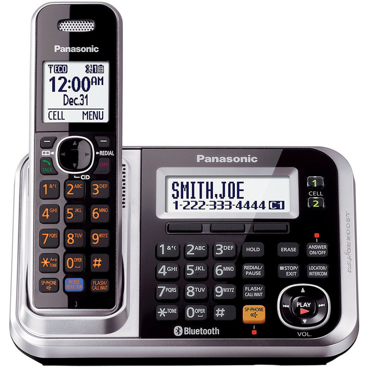 تلفن «KX-TG7841» محصولی حرفهای از شرکت «پاناسونیک» و برای استفادههای خانگی و اداری مناسب است. این تلفن از ظاهری زیبا بهره میبرد. بازهی فرکانسی تحت پوشش تلفن بیسیم KX-TGC1711 برابر با 1.92 تا 1.93 گیگاهرتز است. به یاری فرکانس 1.9گیگاهرتزی این تلفن، نویزی در دستگاههایی مانند مودمهای بیسیم یا تلویزیون دریافت نخواهد شد. صدای منتقلشده توسط این تلفن بسیار باکیفیت و واضح است. تلفن KX-TG7841 از نوع بیسیم و متشکل از دو قسمت شامل یک گوشی و یک پایه است. این پایه وظیفهی نگهداری از گوشی و نقش فرستندهی امواج را دارد؛ گفتنی است در صورت قطعی برق، گوشی بهعنوان تامینکنندهی برق پایه عمل میکند. ابعاد کلیدها بزرگ طراحی شدهاند تا سالمندان نیز در استفاده از آن با مشکل مواجه نشوند. شرکت پاناسونیک، پایه و گوشی تلفن بیسیم KX-TG7841 را به نمایشگرهای 2.5 و 1.8 اینچی برای نمایش شماره تجهیز کرده است. این دو نمایشگر میزان شارژ موجود در تلفن، میزان آنتندهی و شمارههای دریافتشده را نمایش میدهند. تلفن KX-TG7841 از قابلیت دفترچهی تلفن هم بهره میبرد و ذخیرهی 3000 مخاطب در پایهی این تلفن امکانپذیر است. گوشی تلفن پاناسونیک مدل KX-TG7841 انرژی موردنیاز خود را از طریق دو باتری Ni-MH سایز نیمقلمی AAA تامین میکند. به کمک این باتریها میتوان تا 10 ساعت به مکالمهی صوتی پرداخت. مدتزمان شارژدهی در حالت آمادهبهکار برابر با 8 روز است. تلفن بیسیم ،KX-TG7841 به کمک قابلیت Link-To-Cell میتواند با بلوتوث به تلفن همراه وصل شود تا کاربر تماسهای خود را از طریق تلفن بیسیم برقرار کند.