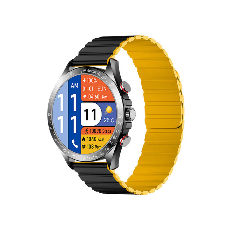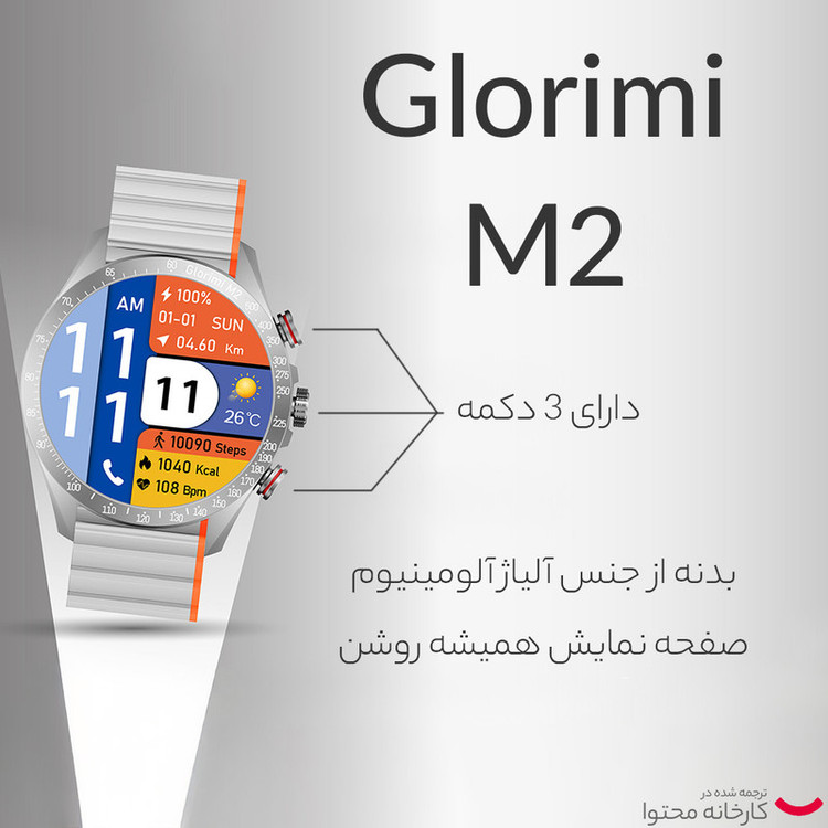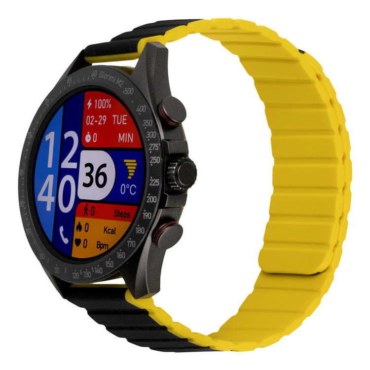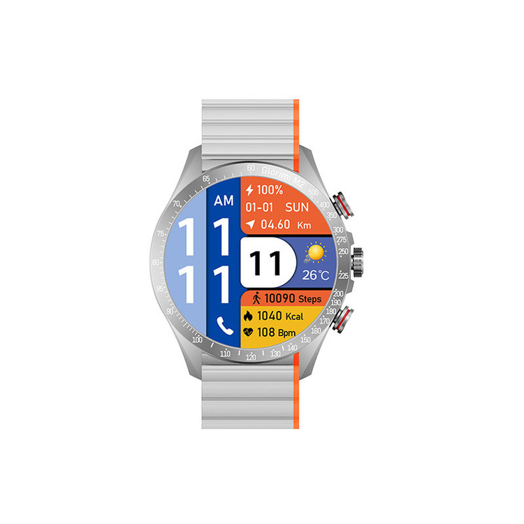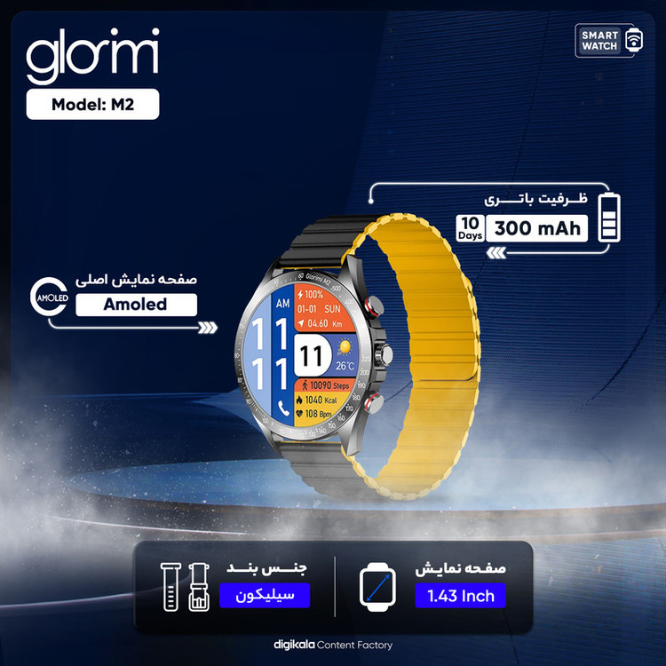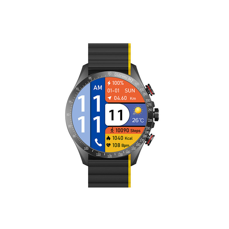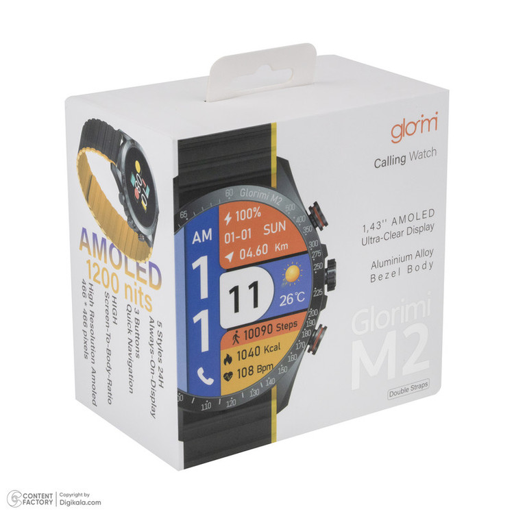 ساعت هوشمند گلوریمی مدل M2 دارای قابلیت های قابلیت مکالمه مستقیم، قابلیت مکالمه از طریق بلوتوث بند سیلیکون